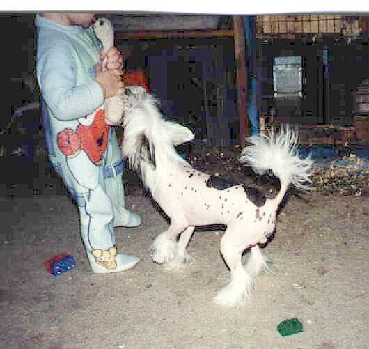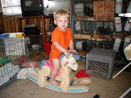 When cage cleaning is in progress he wants to hold and kiss all the piggies, and his favorite game is to chase the dogs up and down the hall while they fetch.